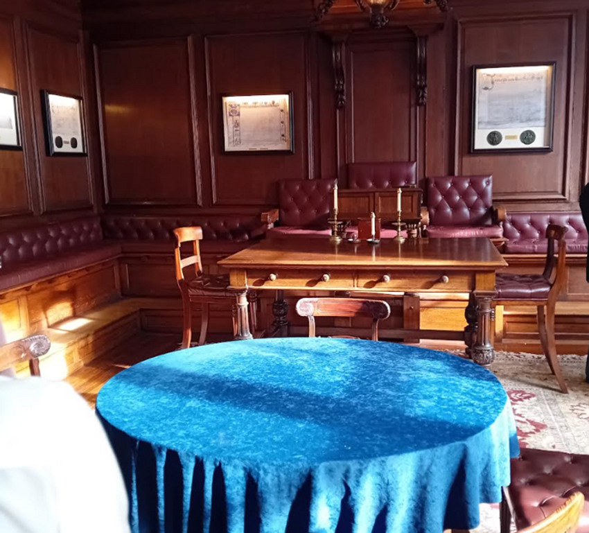 We had an inspiring talk by one of their Liverymen, Tim Gosling. Together with his husband Steve, they bought a Chateau in Normandy, France. The Chateau remained untouched since the retreating German Army removed heating system in the 1940’s. Eisenhower moved into the chateau when he was appointed supreme commander of Operation Overlord, the Allied invasion of north-western Europe. Tim and Steve are slowly renovating the Chateau in the original style but keeping the bullet holes and graffiti left by the German’s and the Allied forces for posterity. So the talk was very appropriate for the day.